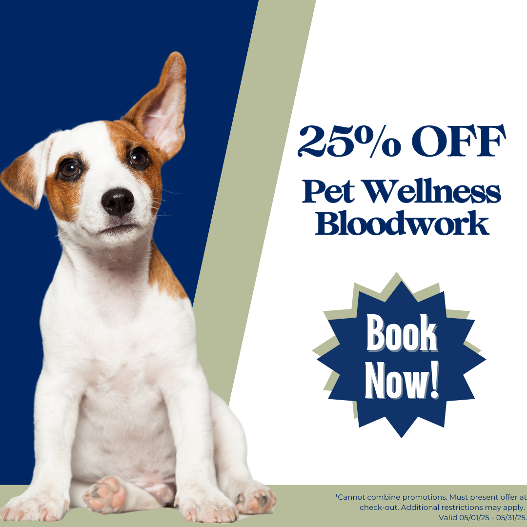 Enjoy 25% off all preventative bloodwork panels when scheduled alongside your pet’s current annual exam. Ensure your furry friend stays healthy with this comprehensive preventive care offer!